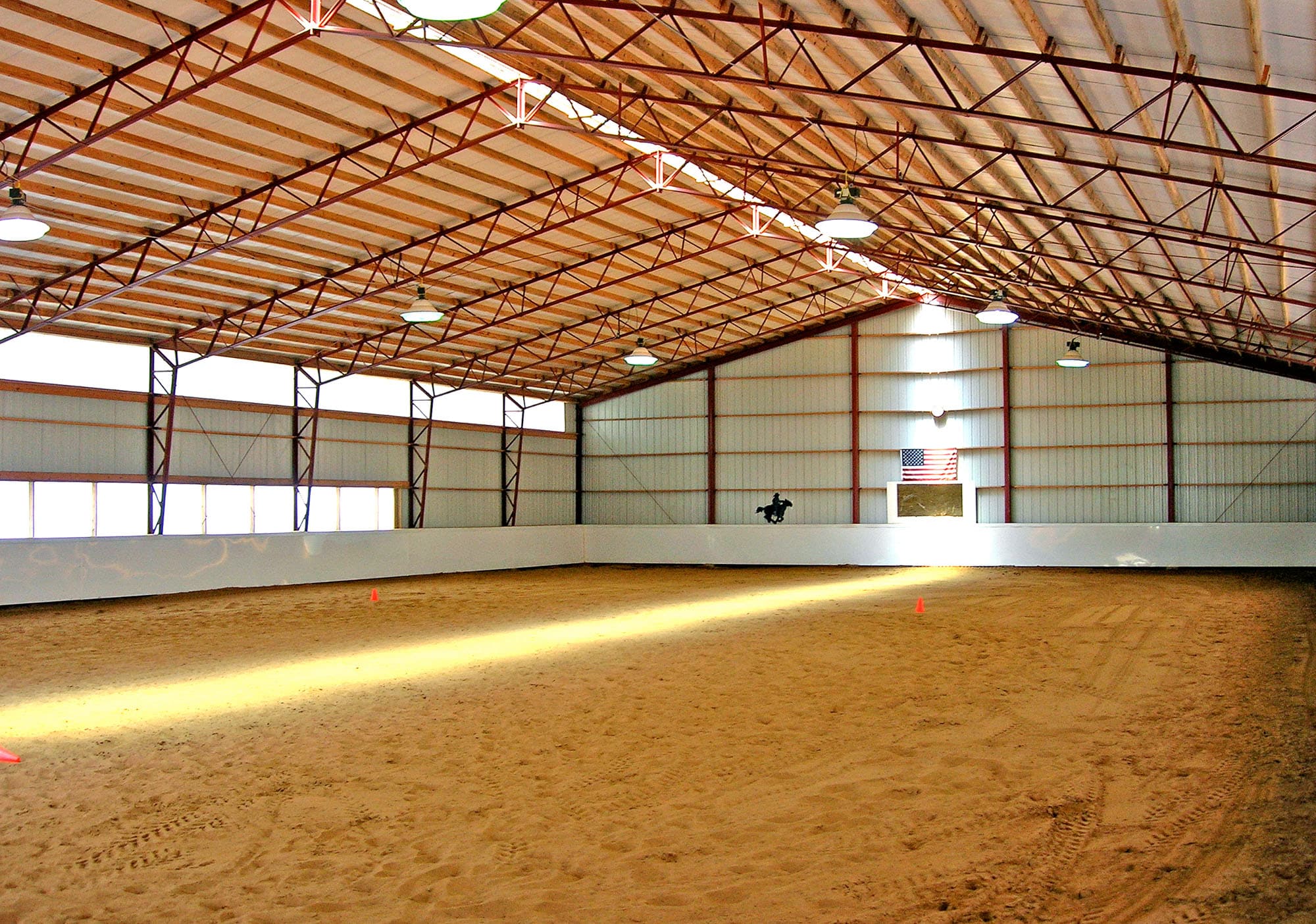 K Buildings are a hybrid structure that uses steel mainframes for superior strength and wider free spans. Wood girts and purlins are utilized for cost efficiency and ease of construction. The concrete foundations eliminate the inherent problem of rotting and twisting posts.